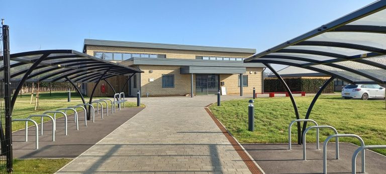 The new school features an activity studio, a multi-use games area (MUGA), a dedicated library and seven classrooms. Air source heat pumps heat both buildings with EPC ratings of A.